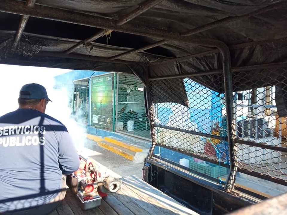 PROGRESO, 26 de septiembre. – El H. Ayuntamiento que preside el alcalde Julián Zacarías Curi, a través de la Dirección de Servicios Públicos y Ecología, informan a la sociedad que se está redoblando labores de fumigación tanto en la cabecera del municipio como en sus comisarías.