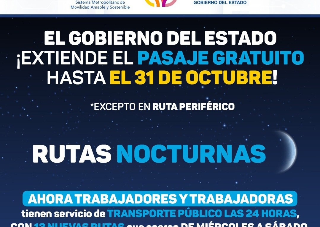 Posteriormente, comenzaría la implementación de cobro de este servicio y la tarifa que, como se anunció, será de 15 pesos con la tarjeta inteligente “Va y ven”. Cabe recordar que las Rutas Nocturnas arrancaron operaciones el 31 de agosto con un servicio de transporte público y hasta este lunes ha brindado atención a más de 22 mil usuarios y ha recorrido alrededor de 92 mil kilómetros a través de sus 13 rutas, de miércoles a sábado (madrugada del domingo) de 11:00 de la noche a 5:00 de la mañana.
