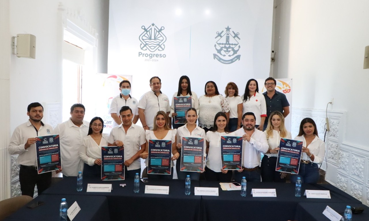 PROGRESO, 27 de septiembre. – El H. Ayuntamiento que preside el alcalde Julián Zacarías Curi, presentó en rueda de prensa, la convocatoria oficial para encontrar a los Reyes del Carnaval 2023.