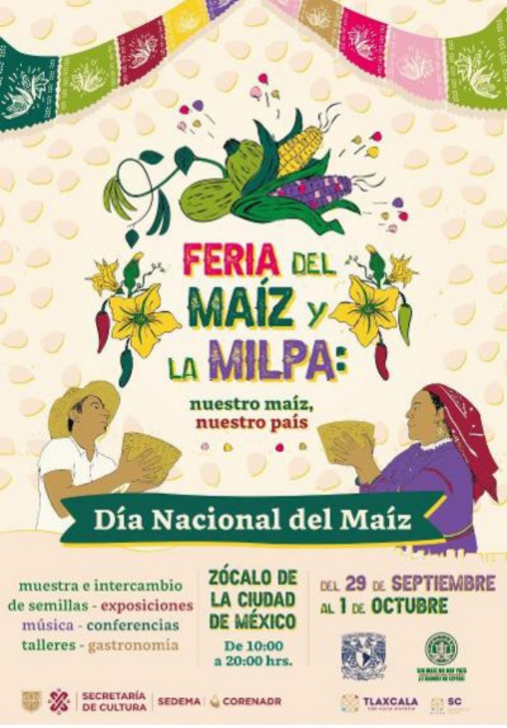 Esta festividad se realiza en el marco del Día Nacional del Maíz y tendrá lugar del 29 de septiembre al 1 de octubre próximos en el Zócalo capitalino, donde se desarrollarán diversas actividades culturales y de educación ambiental como conferencias, talleres, exposiciones, presentación de libros, muestras gastronómicas, danzas y cantos en lenguas nativas, espectáculos musicales y mucho más.