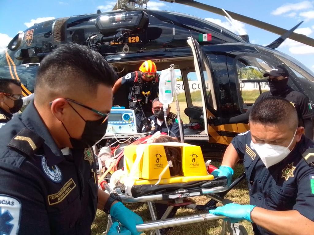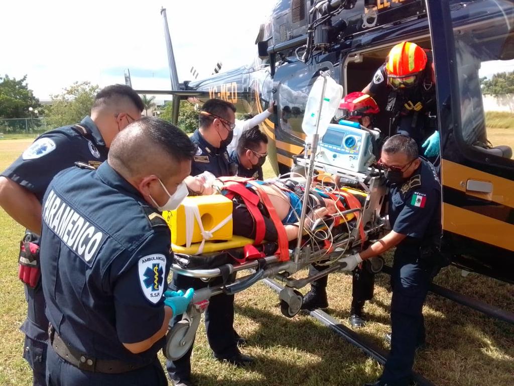 Por la gravedad de sus lesiones, el niño fue traído a Mérida en el helicóptero Bell-429 que cuenta con equipo de soporte vital avanzado y con paramédicos especializados.