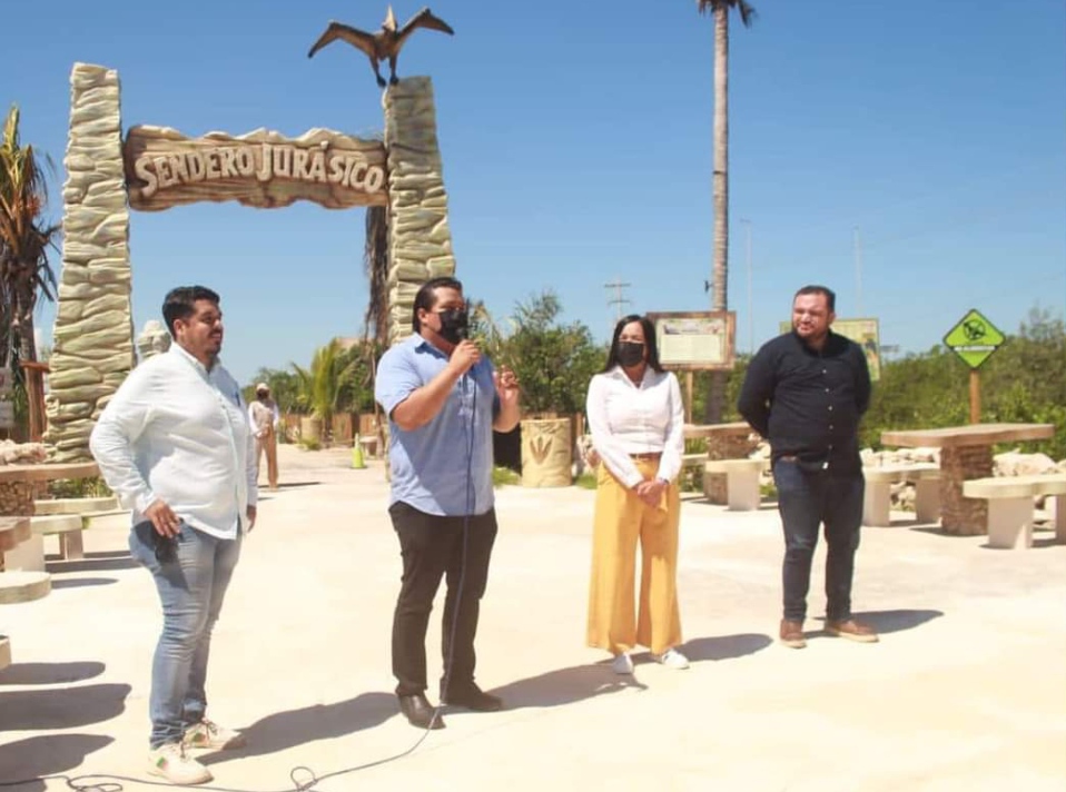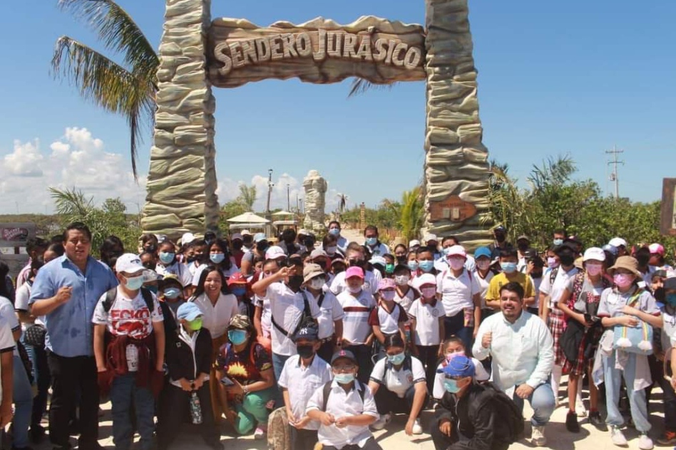 PROGRESO, 1 de octubre. – Gracias al convenio entre Segey y el H. Ayuntamiento que encabeza el alcalde Julián Zacarías Curi, más de 80 alumnos procedentes de Ticul, conocieron las instalaciones del Sendero Jurásico.