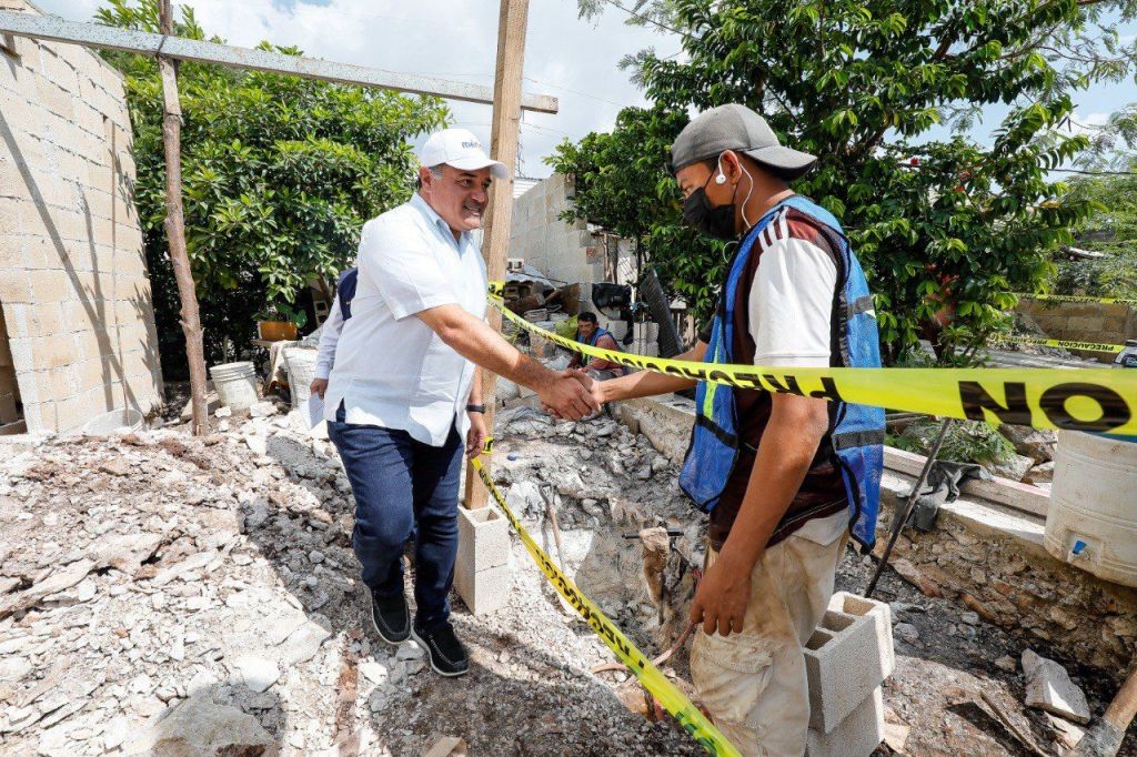 El Alcalde supervisa acciones de vivienda en la colonia Dzununcán para beneficio de la población que más lo necesita.