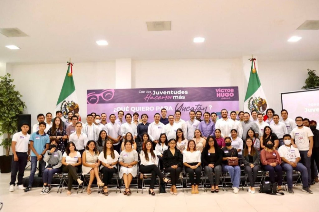 Esta actividad tiene como objetivo acercar la problemática de la juventud yucateca al Congreso del Estado, a través de un ejercicio de diálogo con jóvenes de distintos sectores. En esta foto participaron jóvenes ganadoras y ganadores del Premio Estatal de la Juventud, integrantes del Consejo Estatal de la Juventud, líderes estudiantiles, jóvenes de cámaras empresariales y organizaciones de la sociedad civil.