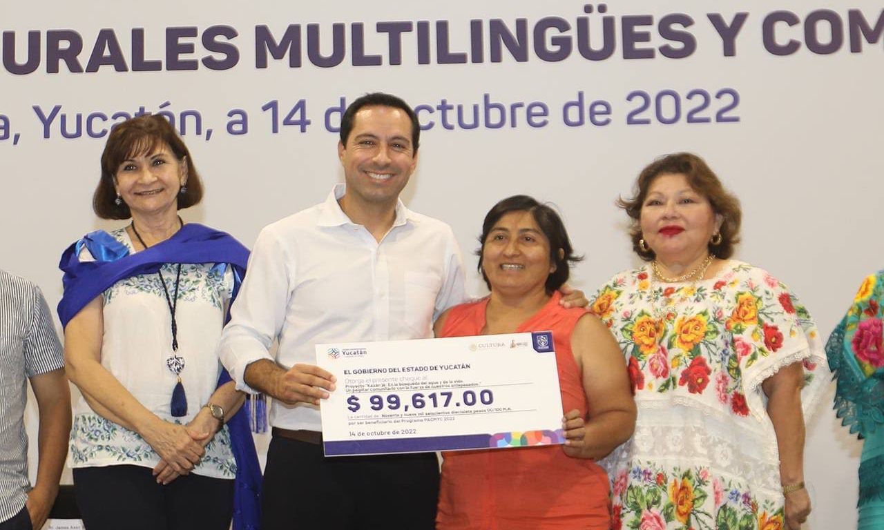 En ceremonia celebrada en el Centro de Convenciones Yucatán Sigo XXI, Vila Dosal entregó estímulos económicos por casi un millón de pesos del Programa de Acciones Culturales Multilingües y Comunitarias (PACMYC) para apoyar proyectos culturales en beneficio de 158 personas que habitan en 14 municipios de la entidad.