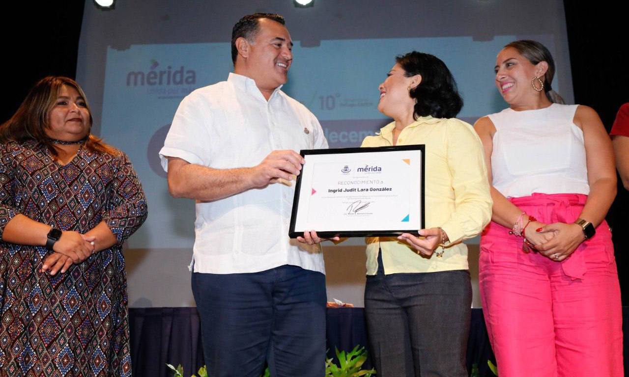Como parte de esta celebración, el Alcalde Renán Barrera entregó reconocimientos a Emma Josefina Vela Cano, Reyna Isabel Contreras Canto, Glendy Yuleny Santana Echeverría, Martha Marlene Pacheco Gamboa, Jorge Antonio Cabrera Dorantes, María del Carmen Ayil Pérez, Aurea Margarita Sosa Dorantes, Ingrid Judit Lara González, Octaviano Espinosa Tejero y Grisell Asunción Ku Salas, por la labor que realizan en el IMM.