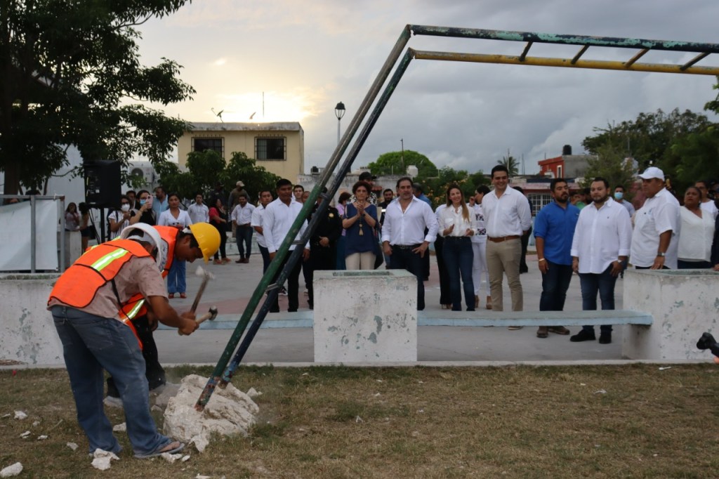 PROGRESO, 15 de octubre. – El alcalde Julián Zacarías Curi encabezó el banderazo de inicio de obras en la comisaría de Flamboyanes, las cuales incluyen la remodelación del parque “Ignacio Zaragoza”, así como la creación de pozos de agua y la ampliación de red eléctrica en la colonia Ivey.