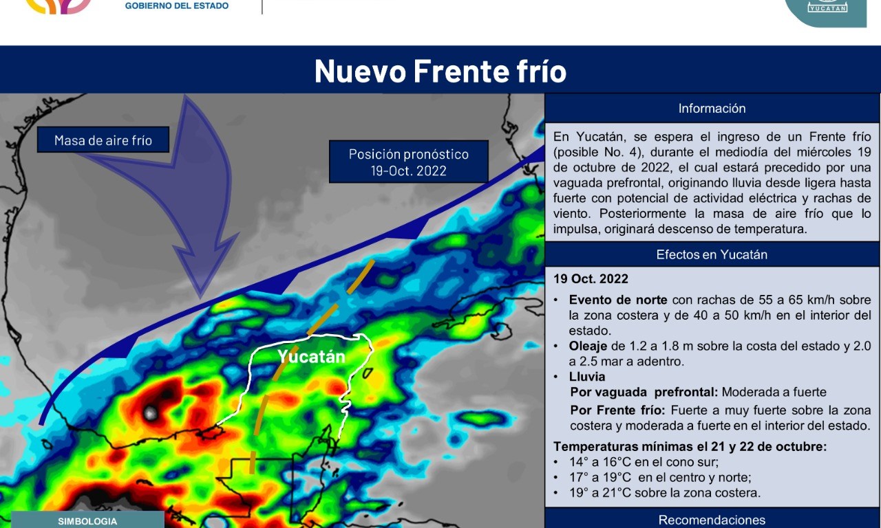 – Ingresará este miércoles 19 de octubre dicho sistema frontal a Yucatán