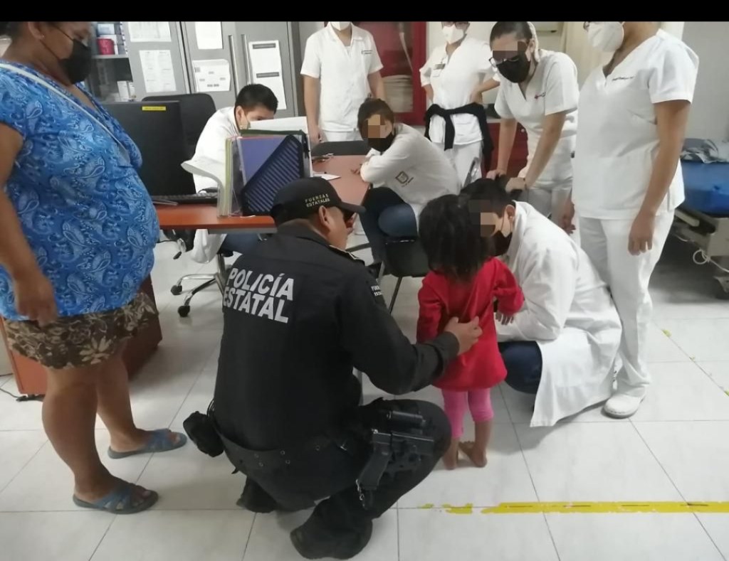 Mérida, Yucatán 21 de octubre de 2022.- Una niña de cuatro años fue salvada de morir asfixiada gracias a la oportuna ayuda que recibió del policía Ernesto Balam de la Secretaría de Seguridad Pública (SSP).