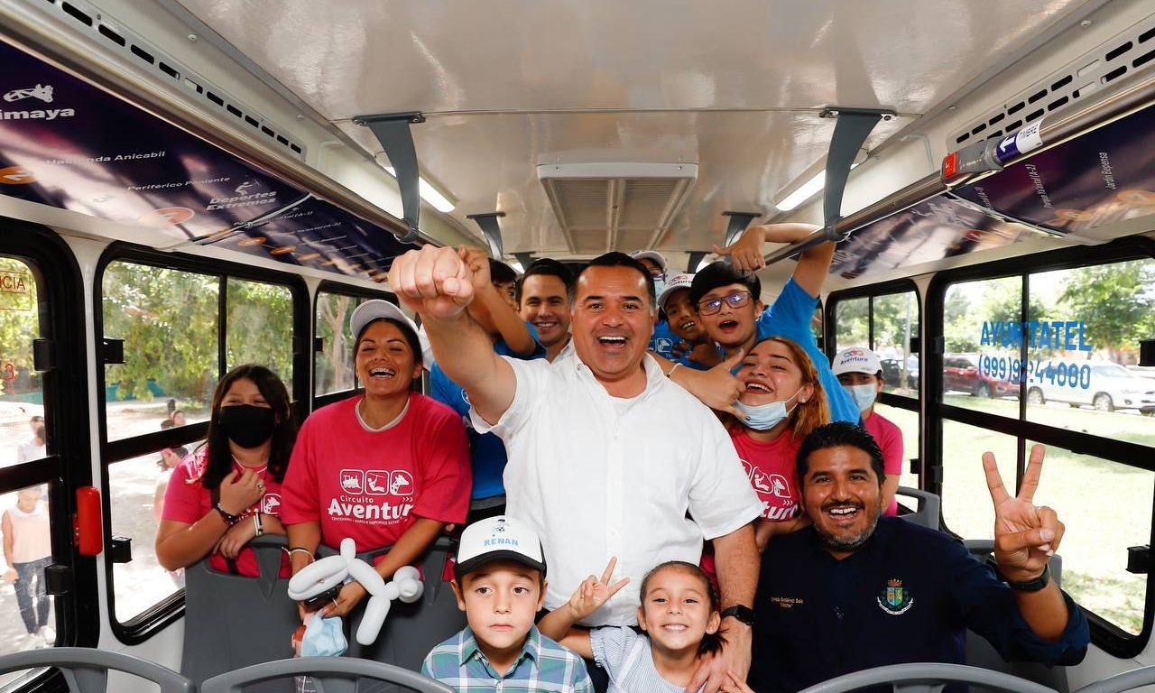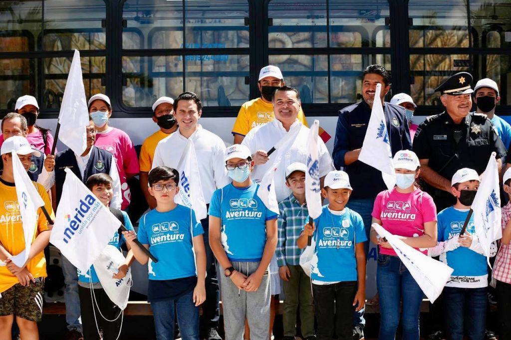 Mérida, Yucatán, a 22 de octubre de 2022.- Para garantizar la diversión y la seguridad de las familias, el Alcalde Renán Barrera Concha puso en marcha las nuevas rutas del programa “Circuito Aventura”, que ofrecerá servicio de traslado gratuito a los parques Centenario, Animaya y Deportes Extremos.