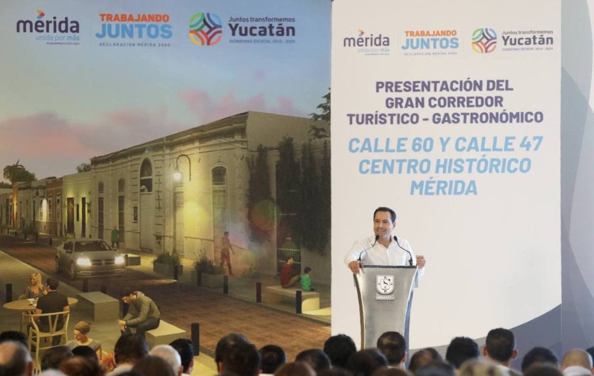 Mérida, Yucatán, 26 de octubre de 2022.- La infraestructura de la movilidad urbana de Yucatán se está transformando como producto del trabajo en equipo, por lo que para seguir impulsándola, el Gobernador Mauricio Vila Dosal y el Alcalde de Mérida, Renán Barrera Concha, presentaron el Gran Corredor Turístico-Gastronómico en las calles 60 y 47 del Centro Histórico, proyecto que ofrecerá vialidades más ordenadas e incluyentes para todos, ofrecerá un nuevo producto al turismo e impulsará la economía de las familias yucatecas.
