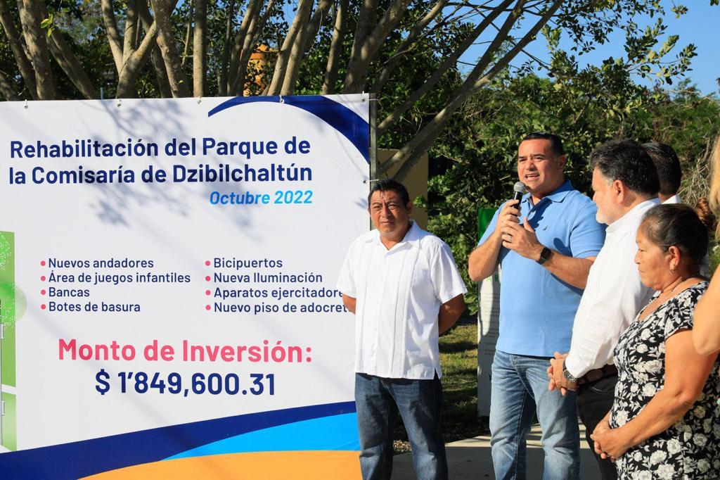 “En este parque en particular se están invirtiendo casi 2 millones de pesos que se suman a un monto que se había invertido previamente en la comisaría de 4 millones; es decir, llevamos casi 6 millones de pesos en temas de obras e infraestructura, para dar mayor realce a los atractivos de la zona turista en la comisaría de Dzibilchaltún”, acotó.
