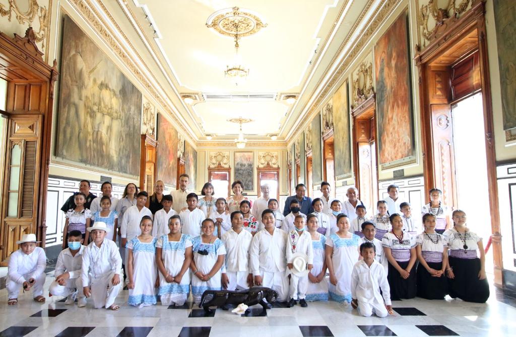 Decenas de niños y niñas provenientes de las serranías del estado de Tlaxcala, así como de las comunidades rurales de diversos municipios de Yucatán acudieron al Palacio de Gobierno en una visita de cortesía a la representante del Gobernador Mauricio Vila Dosal, cuya gestión se ha distinguido por el apoyo a la cultura, la lengua y las tradiciones de origen maya.