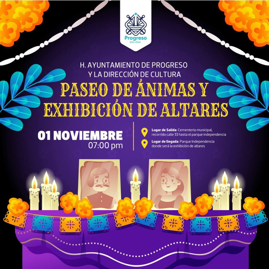 Hoy a las 7 de la noche a las puertas del camposanto municipal llevaremos a cabo el tradicional «Paseo de las Ánimas», mismo que recorrerá la calle 33 hasta llegar al Parque Independencia en donde habrá la Muestra de Altares.