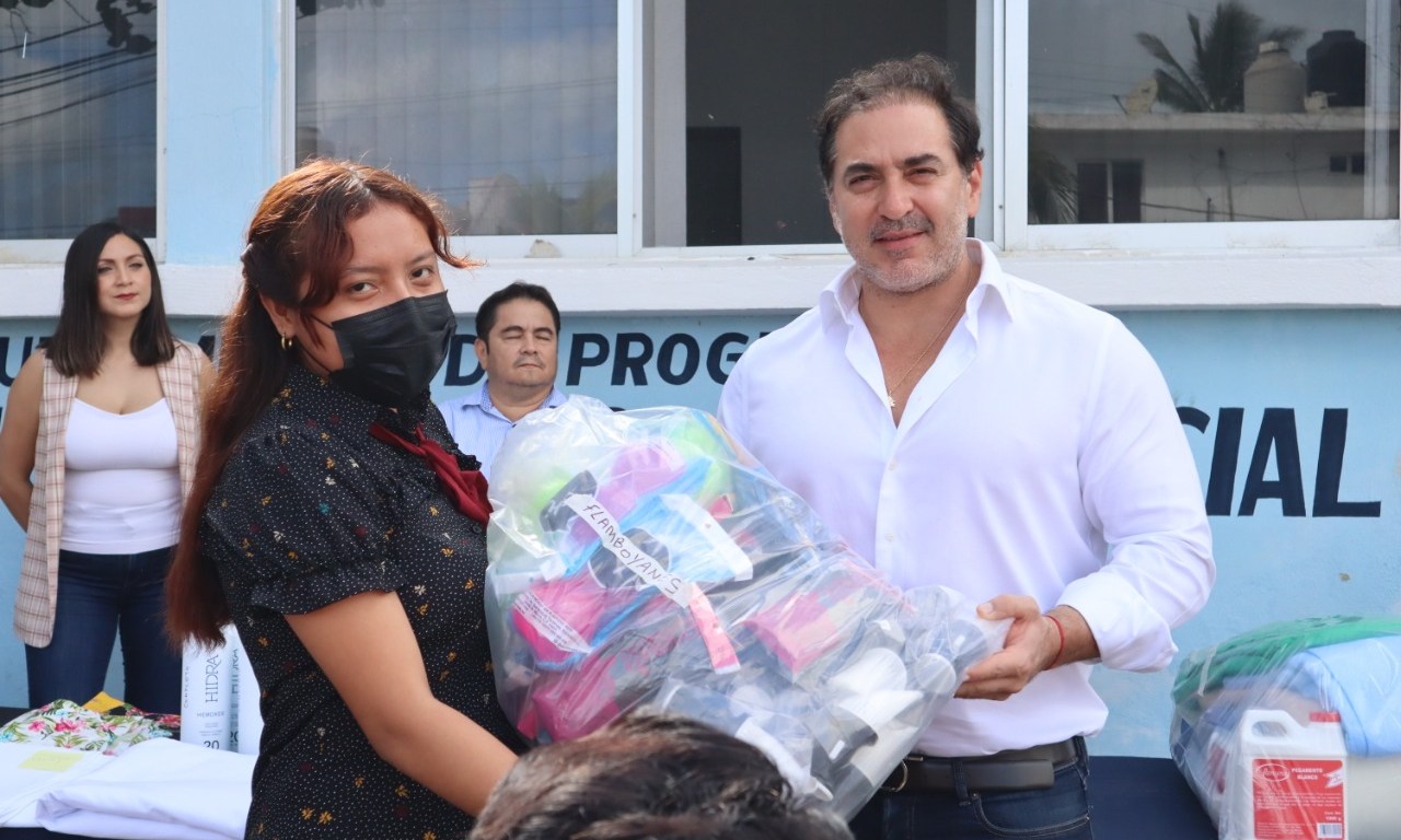 PROGRESO, 05 de octubre. – Con el objetivo de que las y los estudiantes continúen su aprendizaje en los distintos cursos de autoempleo que se ofrecen, el alcalde Julián Zacarías Curi hizo entrega de material a los Centros de Desarrollo Comunitario del puerto y sus comisarías.