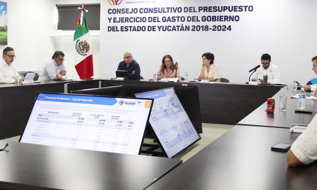 Mérida, Yucatán, 21 de noviembre del 2022. El Consejo Consultivo del Presupuesto y Ejercicio del Gasto de Yucatán, integrado en su mayoría por ciudadanos de cámaras empresariales, integrantes de la academia, colegios de profesionales, expertos en administración y finanzas, así como representantes de la sociedad civil, analizó y aprobó por unanimidad el paquete económico del Gobierno del estado para el ejercicio 2023, que el Gobernador Mauricio Vila Dosal enviará al Congreso local, a más tardar, el próximo viernes 25 de noviembre.