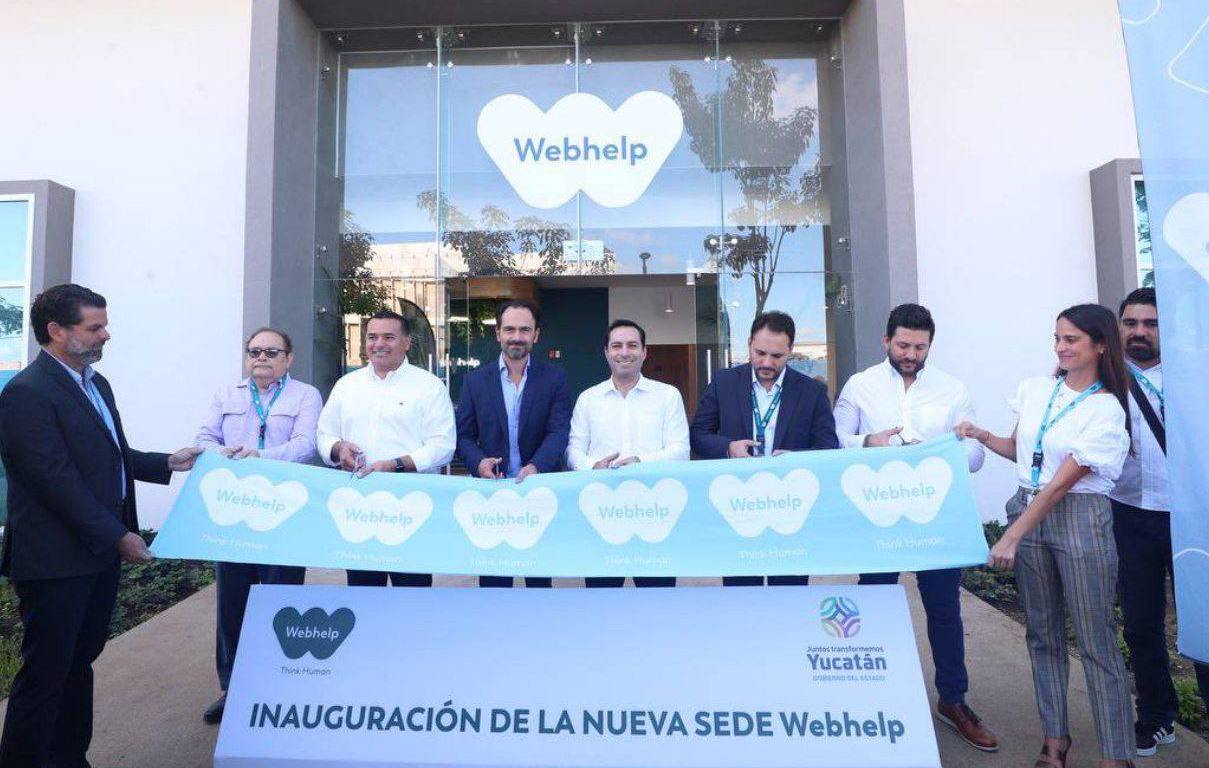 Mérida, Yucatán, 23 de noviembre de 2022.- Empresas líder a nivel mundial apuestan por Yucatán para desarrollar sus proyectos demostrando su confianza hacia la entidad por su seguridad, certeza jurídica y talento humano, como la empresa Webhelp, especializada en soluciones comerciales y de experiencia al cliente en la industria de Contact Center, con presencia en 60 países con más de 125 mil colaboradores inteligentes, edificio que inauguró el Gobernador Mauricio Vila Dosal con lo que a través del trabajo en equipo, se ofrecen más y mejores empleos de calidad a los habitantes de la entidad.
