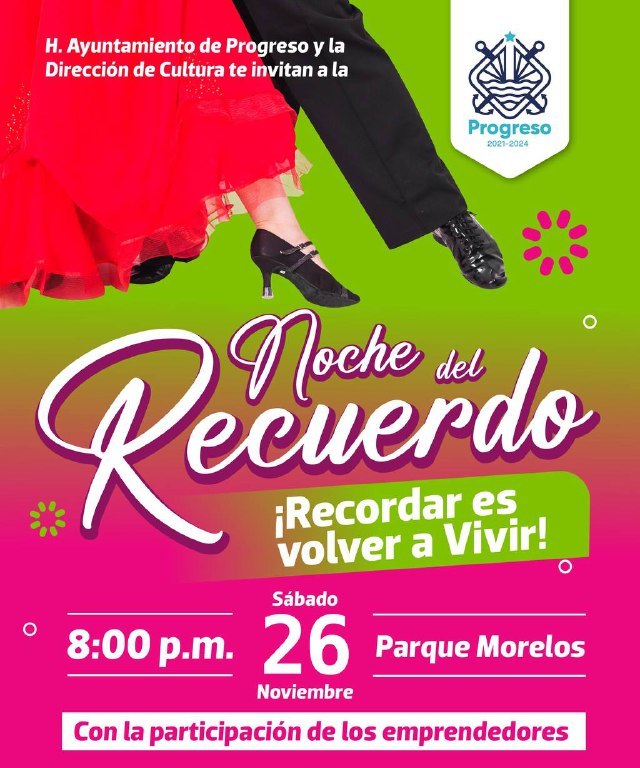 Los invitamos este sábado 26 de noviembre a “Noches del Recuerdo” que se efectuará en el Parque Morelos, a partir de las 8 de la noche.
