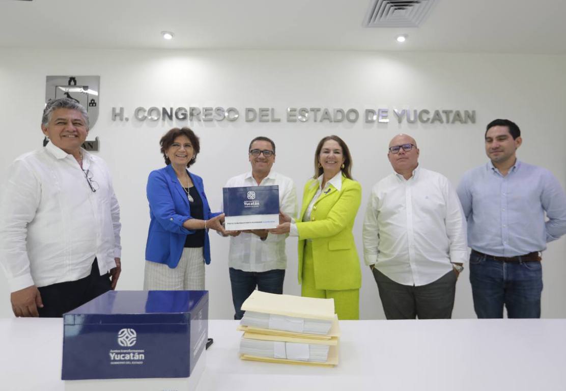 En cumplimiento con lo dispuesto en la Ley, las titulares de las Secretarías General de Gobierno (SGG), María Fritz Sierra; de Administración y Finanzas (SAF), Olga Rosas Moya; el Consejero Jurídico del Estado, Yussif Heredia Fritz, así como el director general de la Agencia de Administración Fiscal de Yucatán (AAFY), Juan Carlos Rosel Flores, entregaron el proyecto de paquete fiscal del próximo año al presidente de la Junta de Gobierno y Coordinación Política, Víctor Hugo Lozano Poveda, y al presidente de la Comisión de Presupuesto, Patrimonio Estatal y Municipal del Congreso local, Jesús Pérez Ballote, para su análisis, discusión y, en su caso, aprobación por los diputados integrantes de la 63 legislatura.