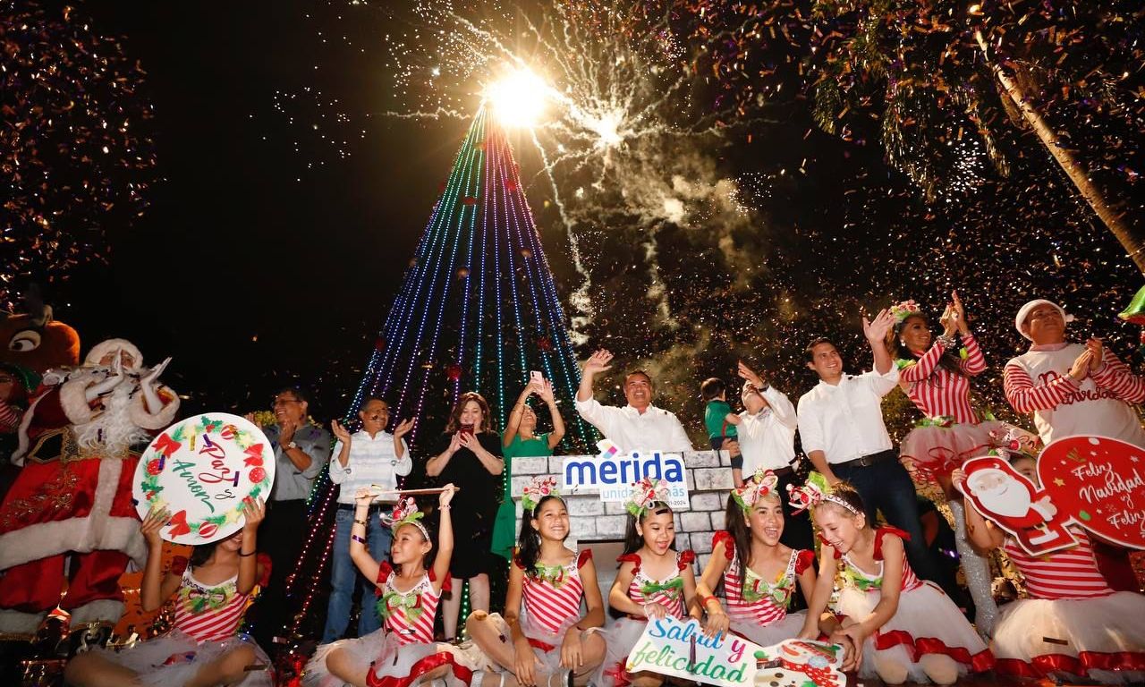 Con un llamado a la unión y a fomentar la armonía entre las familias, el Alcalde Renán Barrera Concha encendió las luces del árbol navideño en el inicio del Paseo de Montejo ante la emoción de niños y adultos que se reunieron desde temprano para disfrutar las decoraciones y el show infantil.