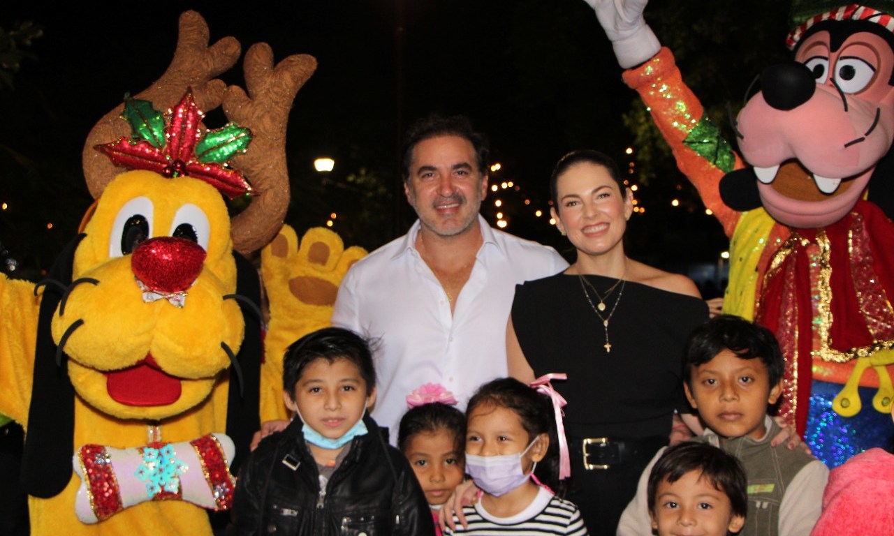 Progreso, Yucatán a 03 de diciembre de 2022. Este jueves, se efectuó en el Parque Independencia de Progreso el tradicional encendido del Árbol de Navidad, al que asistieron cientos de niñas y niños así como el alcalde Julián Zacarías Curi y su esposa, la presidenta honoraria del DIF Municipal, Alma Rosa Gutiérrez Novelo, para que juntos le den la bienvenida al espíritu navideño.