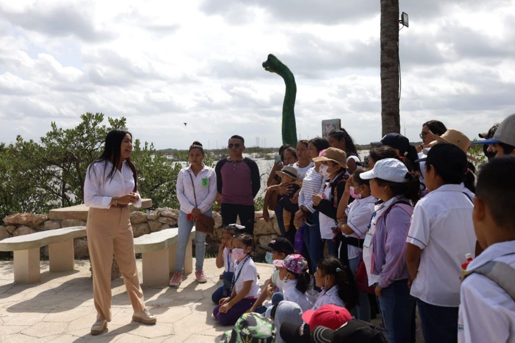 Progreso, Yucatán a 03 de diciembre de 2022. “Un espacio de mucha historia, hemos aprendido mucho. Mis alumnos quedaron maravillados. La atención de los guías es excepcional. Agradecemos al alcalde Julián Zacarías Curi por la oportunidad y que sigan cosas buenas para Progreso”, expresó la maestra Genny Mavilis, del Instituto Universitario Mérida, luego de visitar el Sendero Jurásico en compañía de sus alumnos.