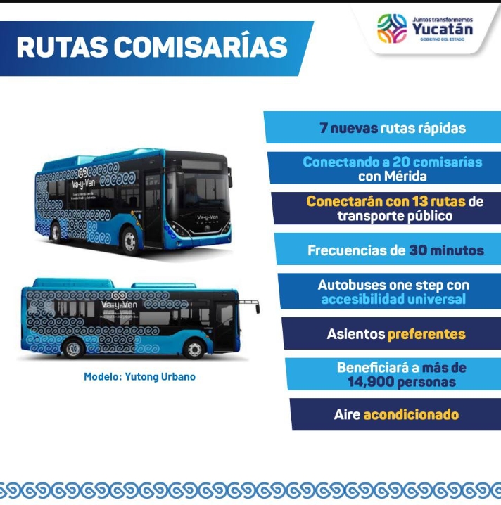 -Serán siete trayectos rápidos que conectarán 20 comisarías meridanas con la capital yucateca y 13 rutas del transporte público, lo que beneficiará a más de 14,900 personas.