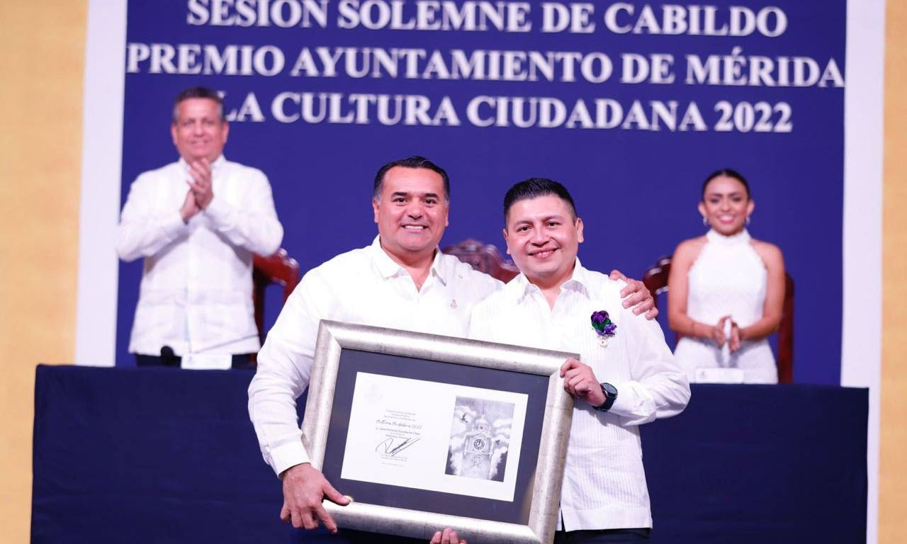 En Sesión Solemne de Cabildo, el Alcalde Renán Barrera entrega el “Premio Ayuntamiento de Mérida a la Cultura Ciudadana 2022”.