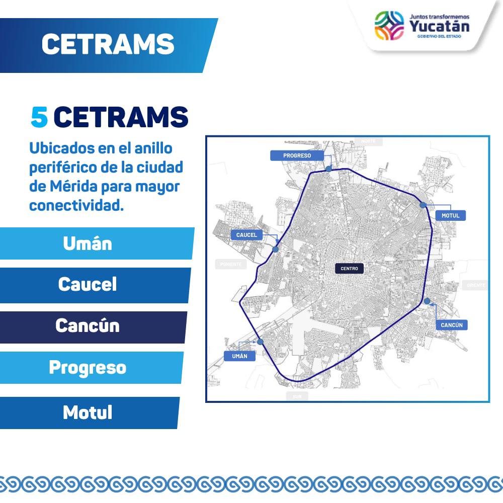 Como anunció el Gobernador Mauricio Vila Dosal la semana pasada, se construirán cinco Cetrams en puntos estratégicos del Anillo Periférico de la ciudad de Mérida para lograr una mayor conectividad y ofrecer a la población de la capital yucateca y sus comunidades aledañas más opciones para trasbordar diferentes opciones de transporte público.