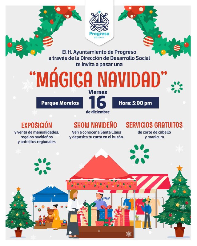 El primero de ellos se llevará a cabo en el Parque Morelos con “Mágica Navidad” a cargo de la Dirección de Desarrollo Social; habrá show navideño, servicios gratuitos de corte de cabello y manicure, así como la exposición de manualidades y venta de antojitos regionales.