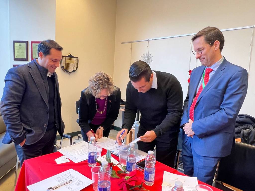 Montreal, Canadá, 15 de diciembre de 2022.- Estudiantes yucatecos tendrán mayores y mejores posibilidades para realizar intercambios académicos en las universidades más prestigiosas del extranjero, como producto de la colaboración que fortalece Yucatán con instituciones de educación superior al reunirse el Gobernador Mauricio Vila Dosal con representantes de Universidades Canadienses en busca de oportunidades para las y los jóvenes del estado.