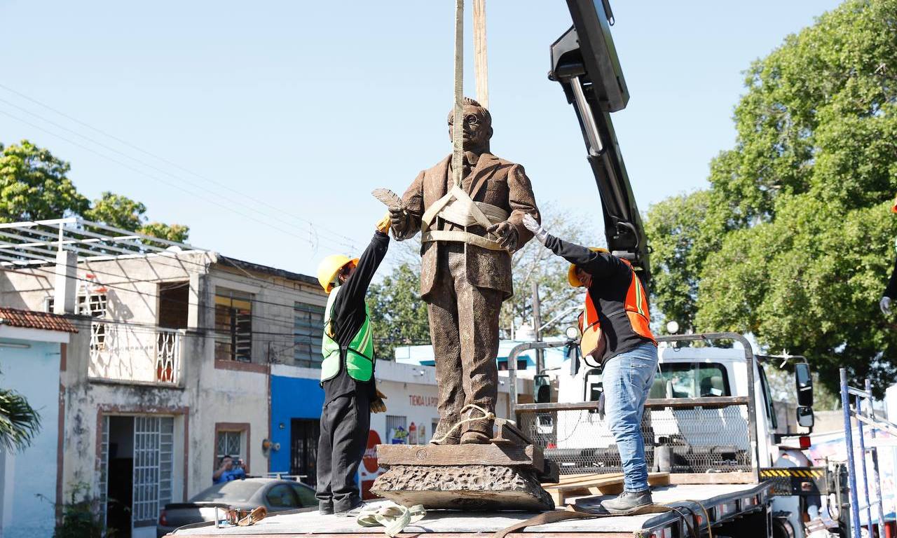 “Este elemento ha estado por aquí desde 1973 y de acuerdo a las indicaciones del Alcalde Renán Barrera lo estamos retirando para su cuidado y para facilitar los trabajos de remodelación del área a cargo del Gobierno del Estado”, comentó.