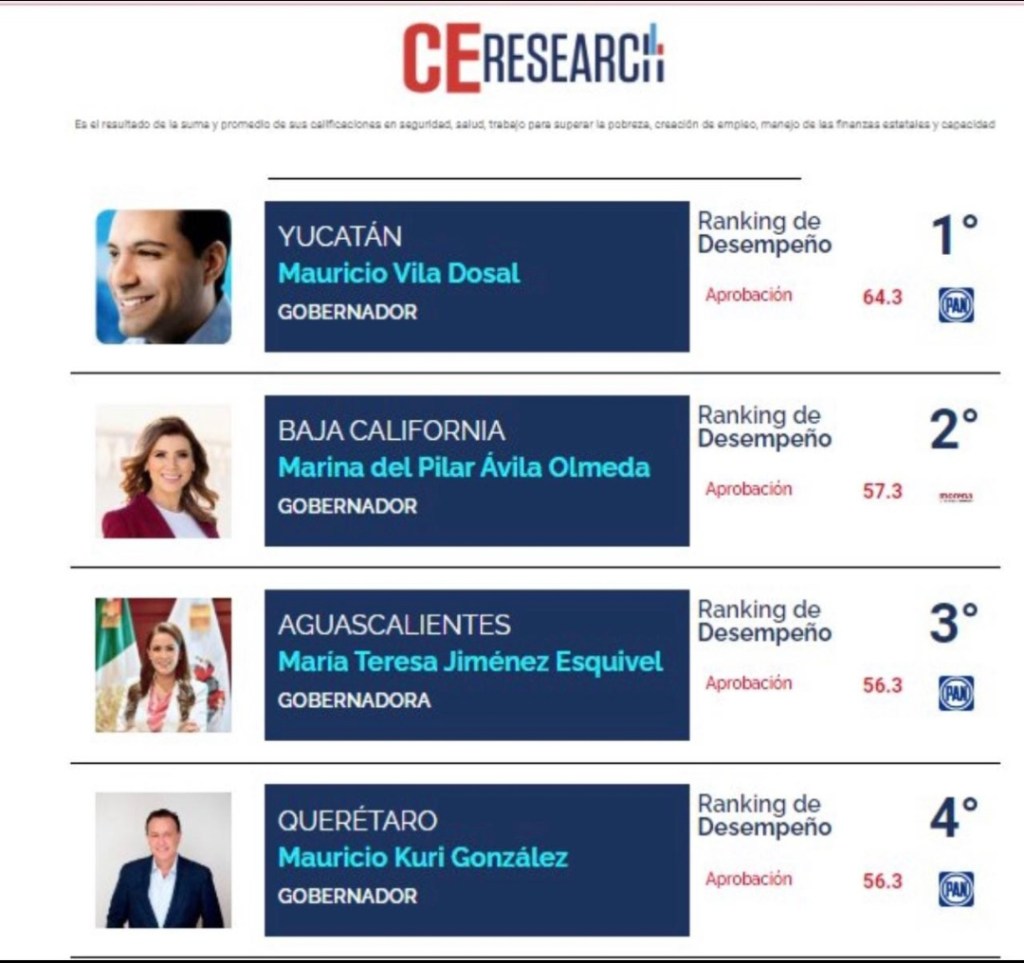 La ciudadanía le da a Yucatán y a Vila Dosal su aprobación y confianza para la aplicación de las políticas y estrategias para mejorar el nivel de vida de todas las familias.