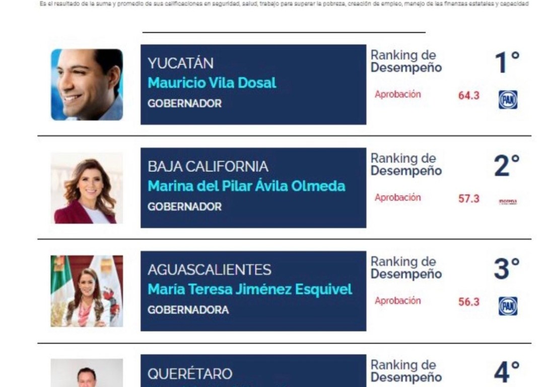 La ciudadanía le da a Yucatán y a Vila Dosal su aprobación y confianza para la aplicación de las políticas y estrategias para mejorar el nivel de vida de todas las familias.