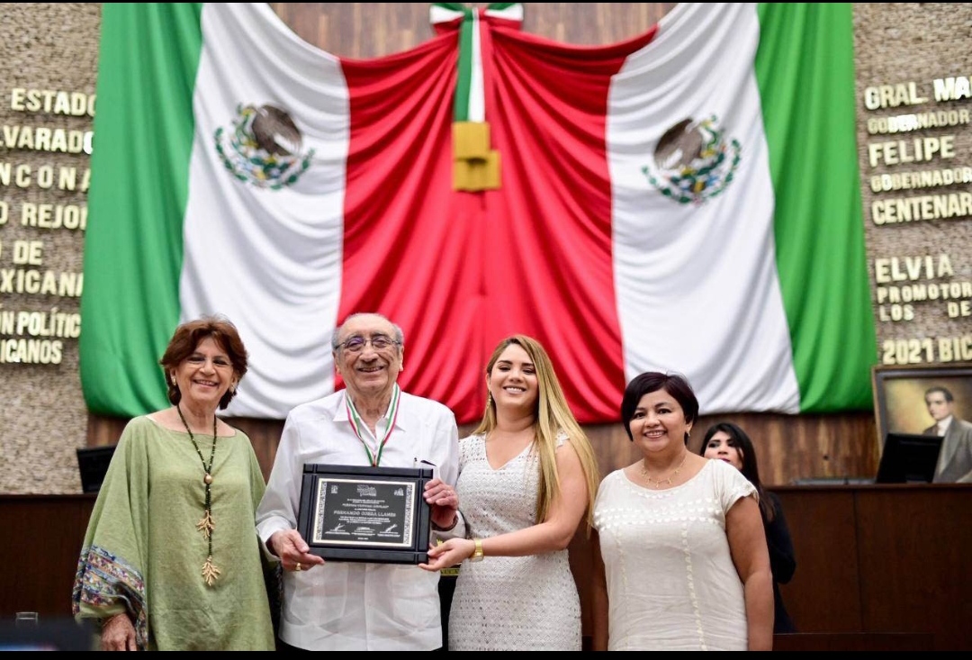 “Luego de esta rigurosa tarea y de la aprobación en el Pleno del Congreso, se acordó que esta honrosa distinción se entregue al contador Fernando Ojeda Llanes, quien ha llevado la presencia de Yucatán a cada rincón y cuyas acciones han marcado una extraordinaria aportación en campos de la ciencia, cultura, finanzas, arte y humanismo”, dijo.