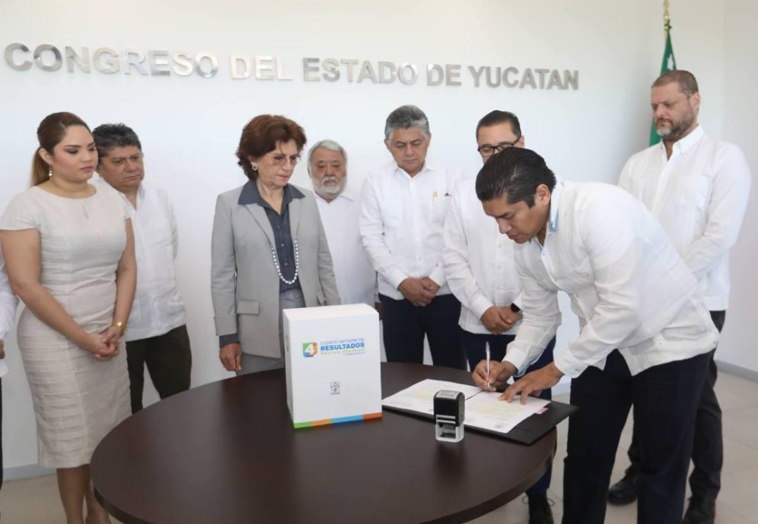 Mérida, Yucatán, 15 de enero de 2023.- En cumplimiento a lo establecido en la Ley, el Gobernador Mauricio Vila Dosal envió al Congreso del Estado, la mañana de este domingo, el Informe de Resultados correspondiente a su cuarto año de gestión, que incluye, además de versión en español, otras en Braille y maya, a fin de establecer una comunicación más universal con todas y todos los yucatecos.
