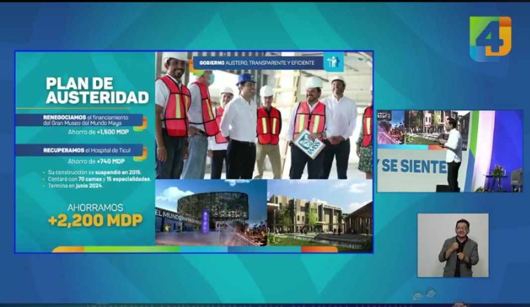 -En el marco del Cuarto Informe de Vila Dosal, se destacó que, en materia de crecimiento económico, mientras la economía nacional crece al 5.8%, Yucatán creció al 8%, según datos del Instituto Nacional de Estadística y Geografía (Inegi) en 2021.