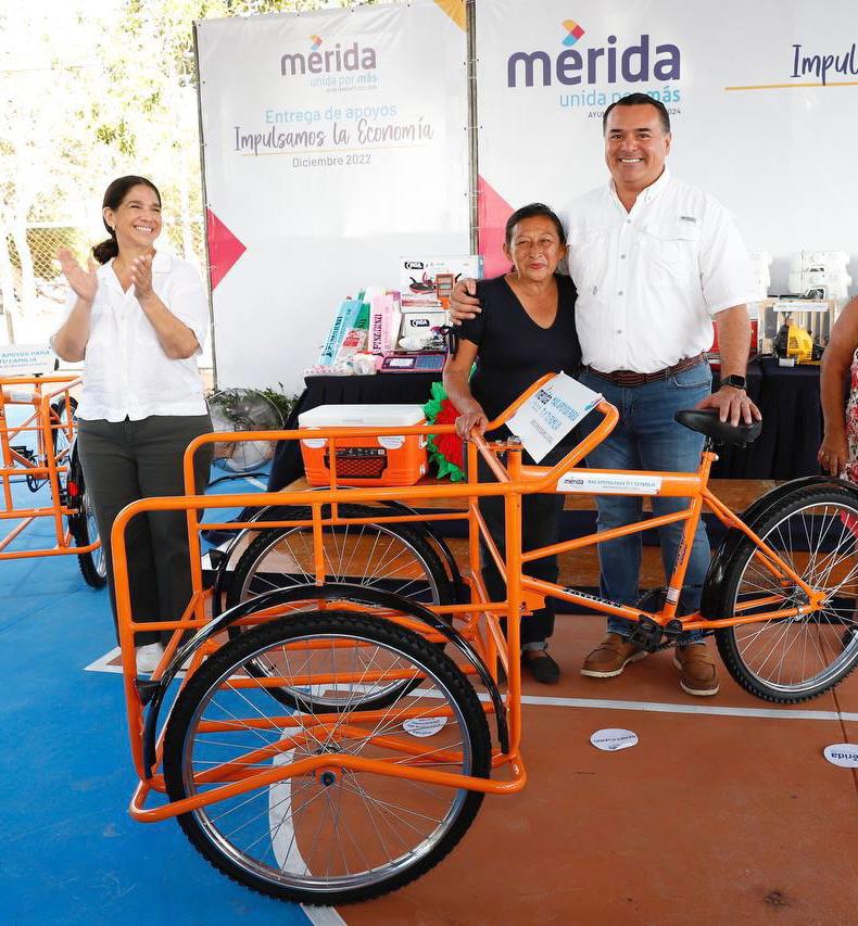 Mérida, Yucatán a 22 de enero de 2023-. Con el propósito de contribuir a mejorar la calidad de vida, especialmente de aquellas familias que viven en condiciones de rezago, así como también de impulsar su economía, el Ayuntamiento que encabeza el Alcalde Renán Barrera Concha entregó 24 triciclos a vecinos de las colonias Plan de Ayala y San José Tecoh.