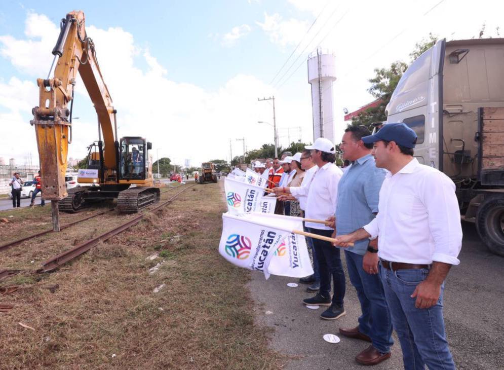 Desde los rieles del fraccionamiento Mayapán, Vila Dosal, junto con los alcaldes de Mérida, Renán Barrera Concha; Kanasín, Edwin Bojórquez Ramírez y de Umán, Gaspar Cisneros Polanco, realizó el banderazo y supervisión del inicio de los trabajos de construcción preliminares de los corredores de lo que será el nuevo transporte público Ie-Tram, en un esfuerzo sin precedente para ofrecer los servicios de transporte público a la altura de lo que merecen las y los yucatecos.