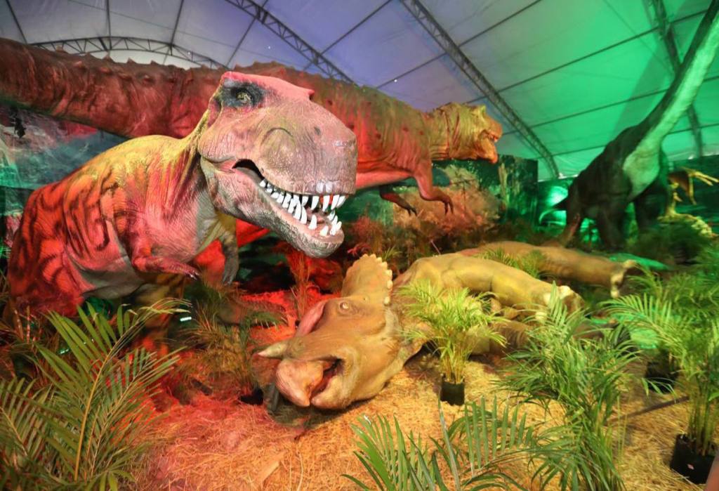 Cuenta con más de 20 ejemplares de diversos tamaños, como tiranosaurio rex, triceratops, braquiosaurio y hasta un mamut, todos de gran realismo, gracias a su estética y la sincronización tanto de sonidos como movimientos.