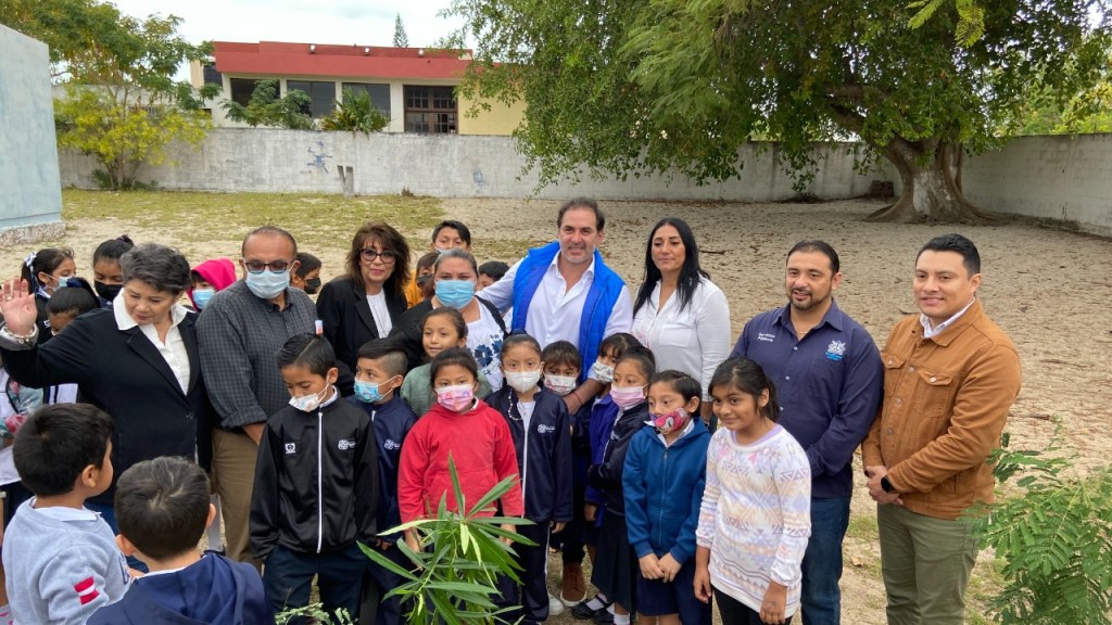 Progreso, Yucatán a 26 de enero de 2023. Los efectos del Frente Frío No. 27 no impidieron que niños de la primaria “Felipe Carrillo Puerto” y el alcalde Julián Zacarías Curi sembraran hoy más de 20 arbolitos en su escuela, para conmemorar el Día Mundial de la Educación Ambiental y recordarle al resto de la ciudadanía la importancia de involucrarse en el cuidado de la flora y fauna.