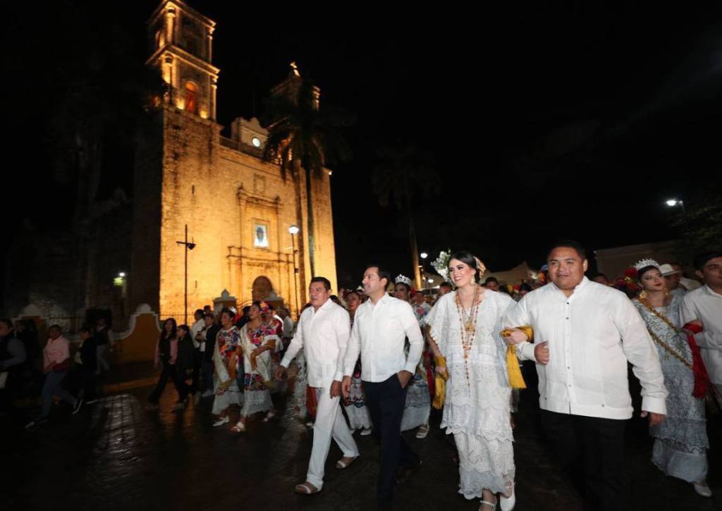 Momentos antes, Vila Dosal encabezó el Paseo de las Mestizas que se realizó durante la Alborada, tradicional caminata que parte desde los bajos del Palacio Municipal hasta el recinto ferial, trayecto que recorrió junto a cientos de habitantes.