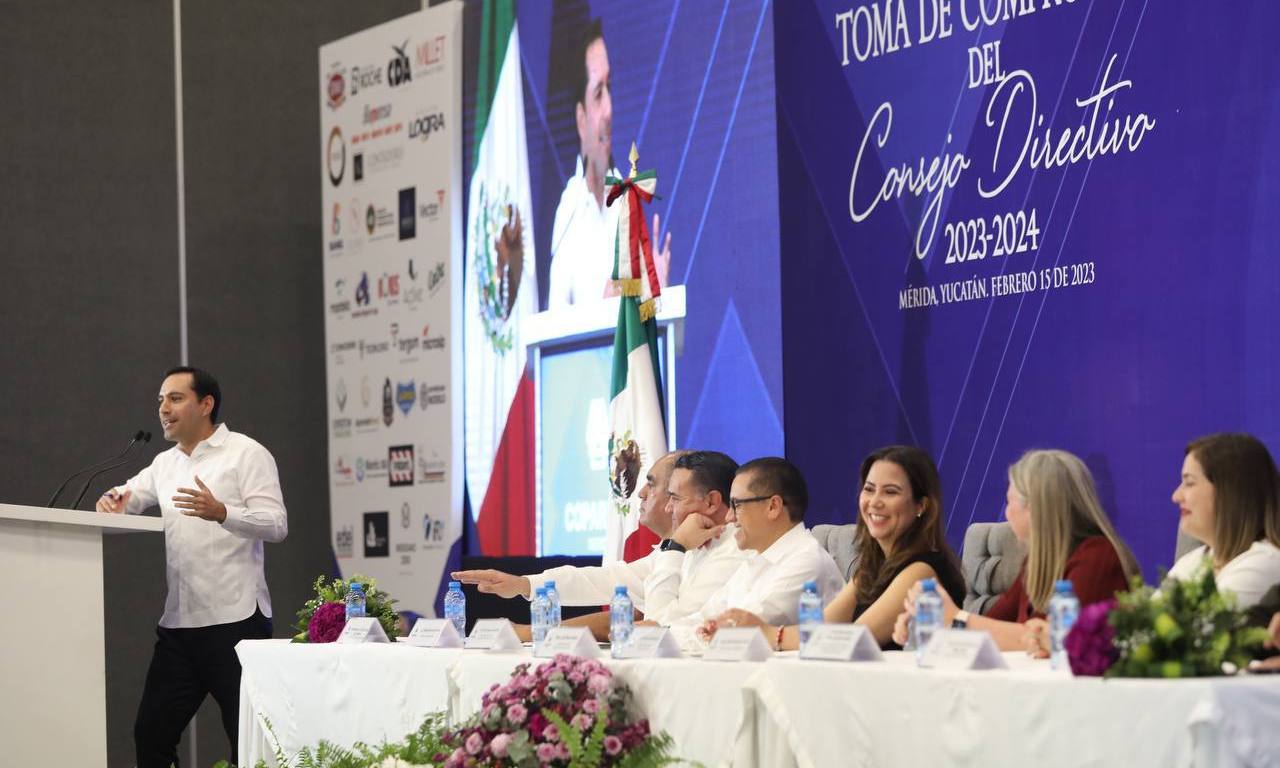 -Vila Dosal encabezó la toma de compromiso del Consejo Directivo 2023-2024 de la Coparmex Mérida, en el cual continuará la actual presidenta, Beatriz Gómory Correa.