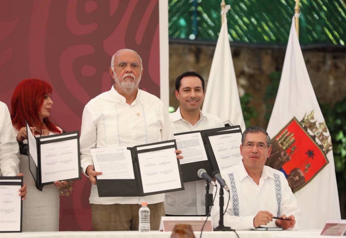 En un encuentro que encabezó el titular de la Secretaría de Gobernación (Segob), Adán Augusto López Hernández, Vila Dosal y los Gobernadores de Guanajuato, Diego Sinhue Rodríguez Vallejo; Michoacán, Alfredo Ramírez Bedolla; Nayarit, Miguel Ángel Navarro Quintero; Campeche, Layda Sansores San Román; Oaxaca, Salomón Jara Cruz; Quintana Roo, Mara Lezama Espinosa; Tabasco, Carlos Manuel Merino Campos; Veracruz, Cuitláhuac García Jiménez, y el coordinador Estratégico de Seguridad de Jalisco, Ricardo Sánchez Berumen, firmaron el documento que permitirá a Yucatán recibir recursos de la Federación por 195.2 millones de pesos.
