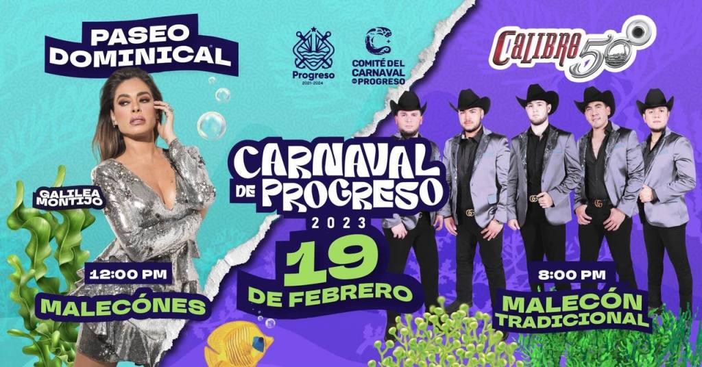El Comité del Carnaval invita a yucatecos y visitantes a disfrutar las bondades del puerto, asimismo del desfile que contará con la presencia de la conductora de televisión Galilea Montijo, la DJ Meire Carvalho, la influencer «Gloria RDZ» y la presentación del grupo norteño-banda “Calibre 50”