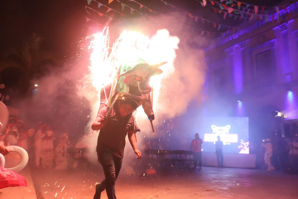Una de las jaranas que atrajo a la pista a varias parejas de diferentes edades, algunas emanadas de la comitiva de los reyes del Carnaval y otras del público, fue “Las mujeres que se pintan”, interpretada por la Orquesta Jaranera de la SSP. Ya en el intermedio de esta fiesta, se realizó la quema del Torito Petate, espectáculo que maravilló a los asistentes.