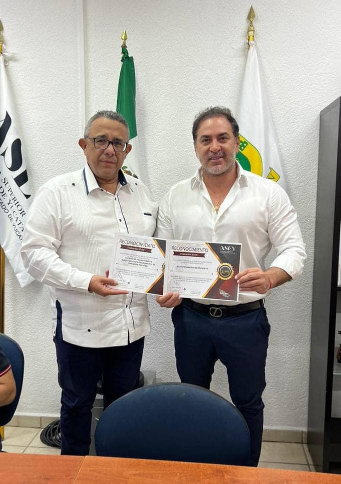 Progreso, Yucatán a 25 de febrero de 2023. Esta semana, el alcalde de Progreso, Julián Zacarías Curi recibió reconocimiento de manos del Auditor Superior del Estado de Yucatán, el contador público, Mario Can Marín, esto por la rendición de cuentas, análisis y transparencia correspondiente al gasto públicos de 2022 de su administración municipal.