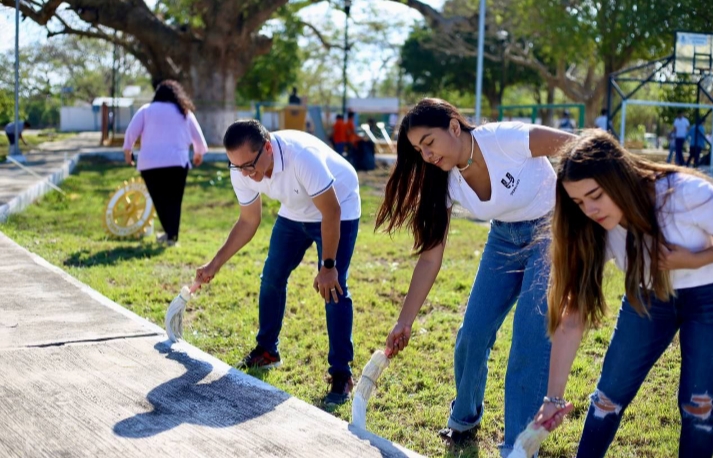 Mérida, Yucatán, 26 de febrero de 2023.- Acompañado de integrantes del Club Rotario de Meridanas, el diputado Victor Hugo Lozano Poveda encabezó los trabajos de limpieza, pintura y reforestación de áreas verdes del parque de la comisaría de Santa María Chi.