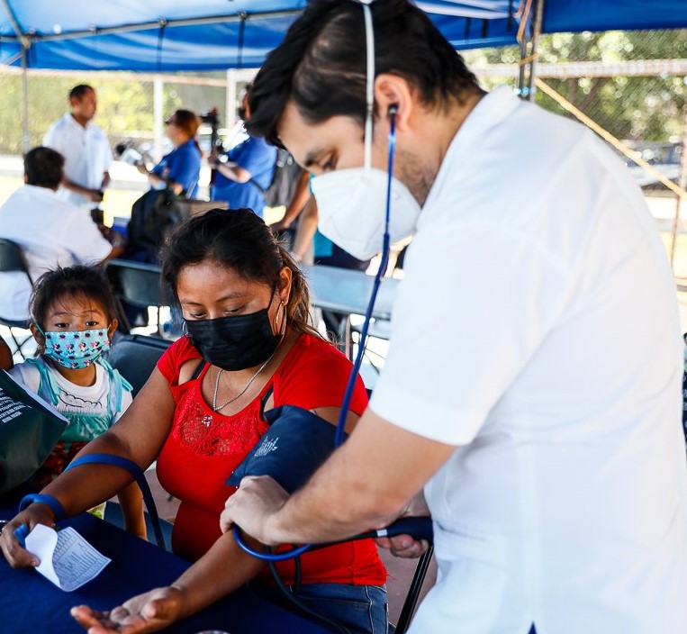 María Concepción Ek Sulub, quien a trajo a su hija a consultar por irritación en la garganta, agradeció al Alcalde por apoyarlos con la atención médica, porque gracias a la Feria de Salud ya no tienen que salir de la comisaría ni gastar en atención médica.