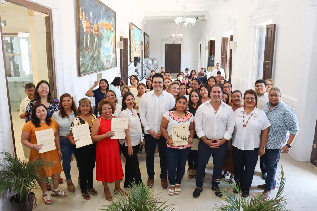Dicha entrega, a modo de graduación, se efectuó ayer en la Sala Juárez del Palacio Municipal; ahí, el edil estuvo acompañado del Diputado del IX Distrito Local, Ing. Erik Rihani González; de la Síndico Municipal, C.P. Patricia Rosado González y de la directora del Centro de Capacitación para el Trabajo Industrial (CECATI) No. 169, Lic. Maribel Herrera Palma, quienes felicitaron a las 44 personas que concluyeron el curso.